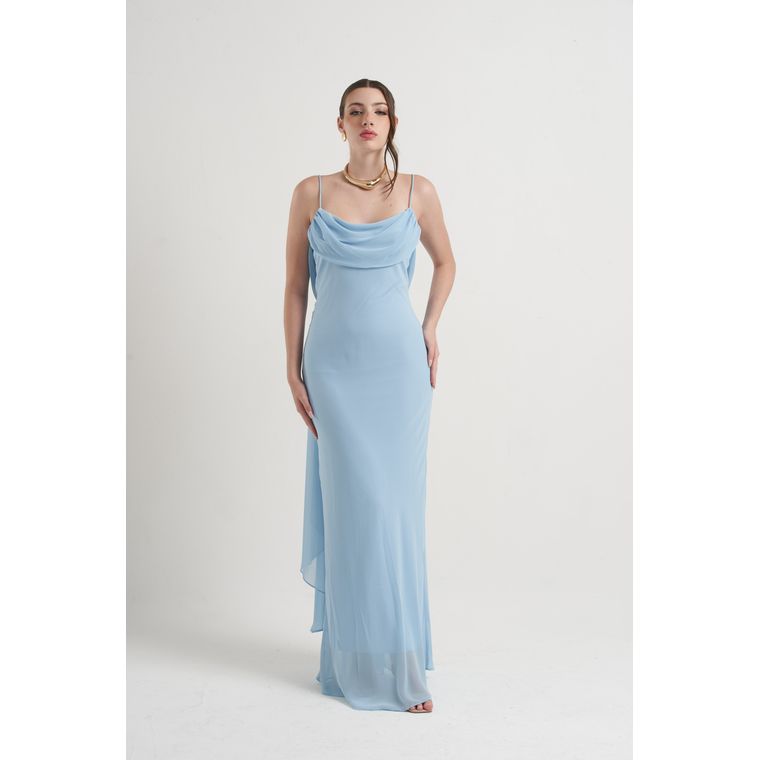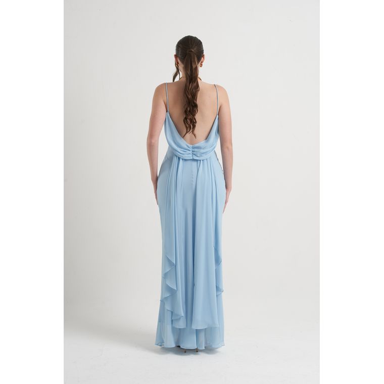 Vestido Bobo é a síntese da elegância e do charme contemporâneo. Confeccionado inteiramente em crepe, o modelo possui alcinhas delicadas e destaque no busto, com detalhe em formato de “U” que valoriza a região de forma sutil e sofisticada. O decote em U nas costas se prolonga em uma espécie de cauda de tecido, também em crepe, que desce do quadril até o final do vestido, criando movimento e fluidez a cada passo.