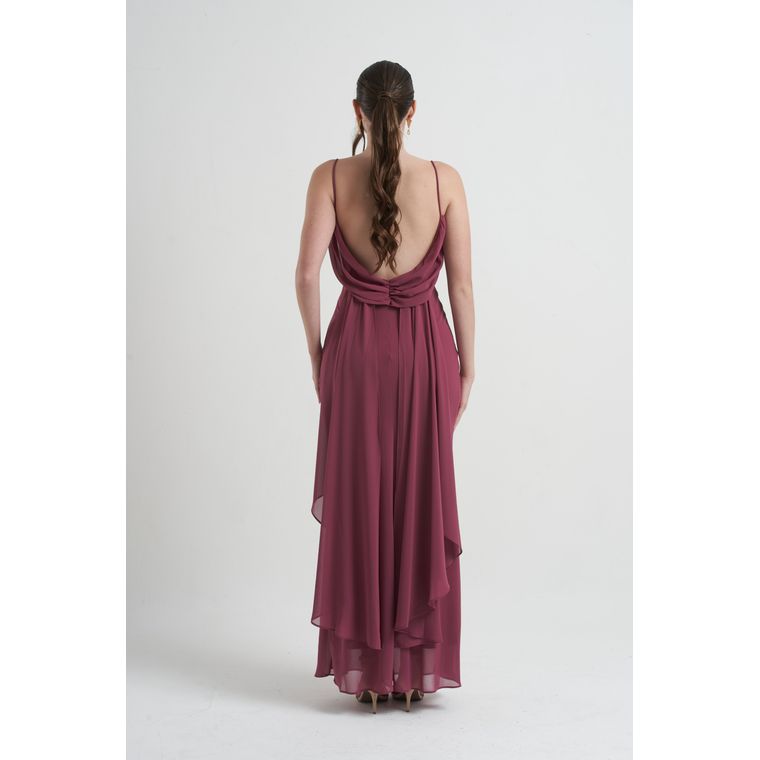 • Decote em U nas costas com prolongamento em cauda de tecido