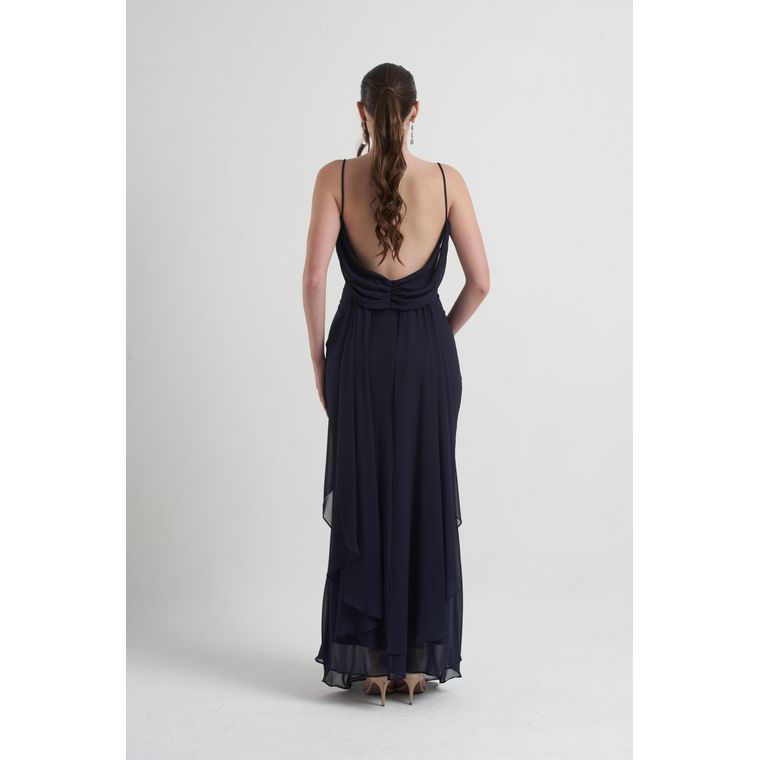 • Decote em U nas costas com prolongamento em cauda de tecido