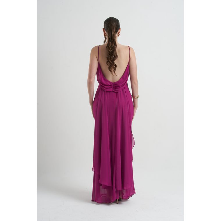 Vestido Bobo é a síntese da elegância e do charme contemporâneo. Confeccionado inteiramente em crepe, o modelo possui alcinhas delicadas e destaque no busto, com detalhe em formato de “U” que valoriza a região de forma sutil e sofisticada. O decote em U nas costas se prolonga em uma espécie de cauda de tecido, também em crepe, que desce do quadril até o final do vestido, criando movimento e fluidez a cada passo.