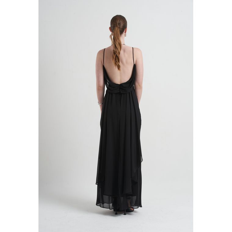 • Decote em U nas costas com prolongamento em cauda de tecido