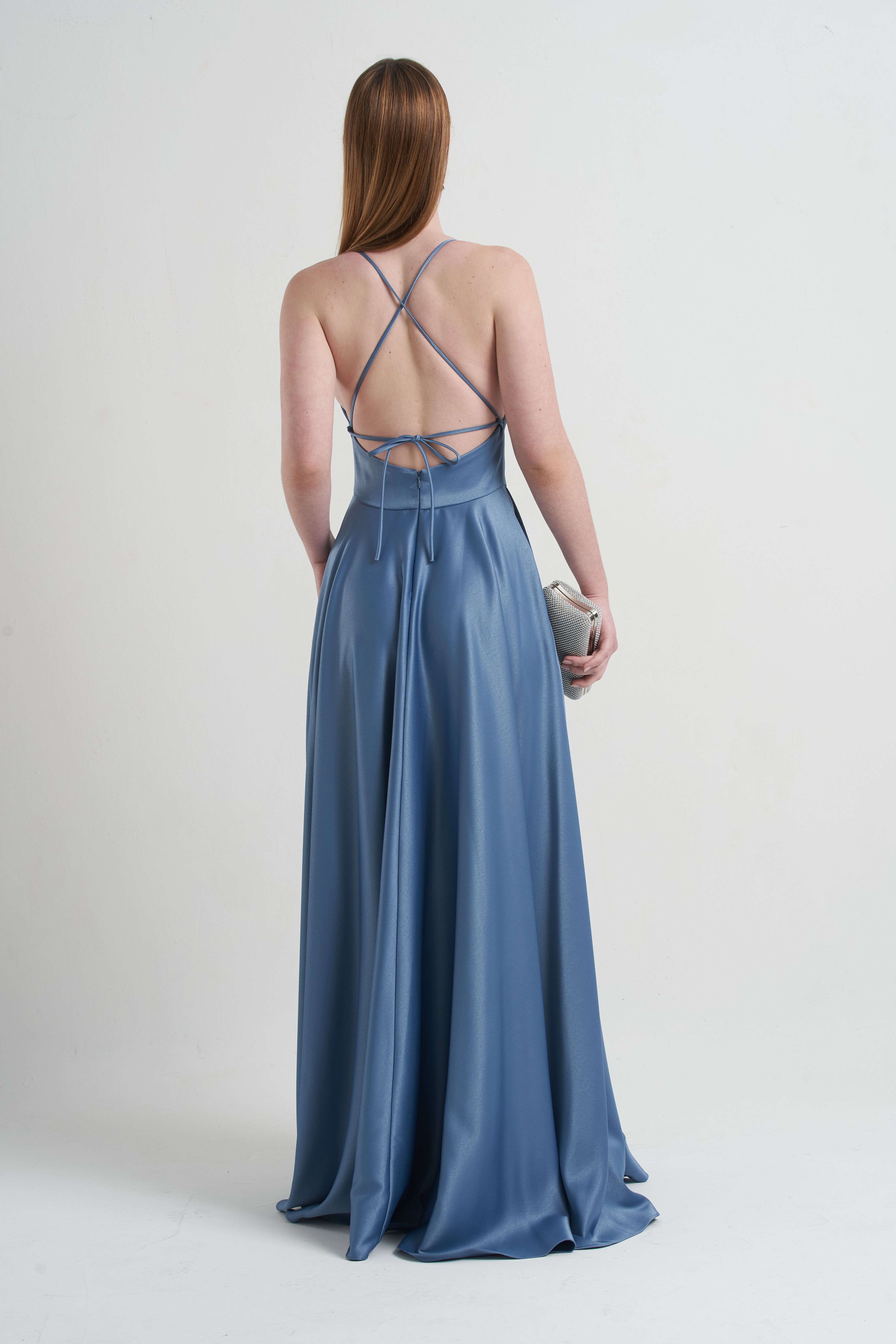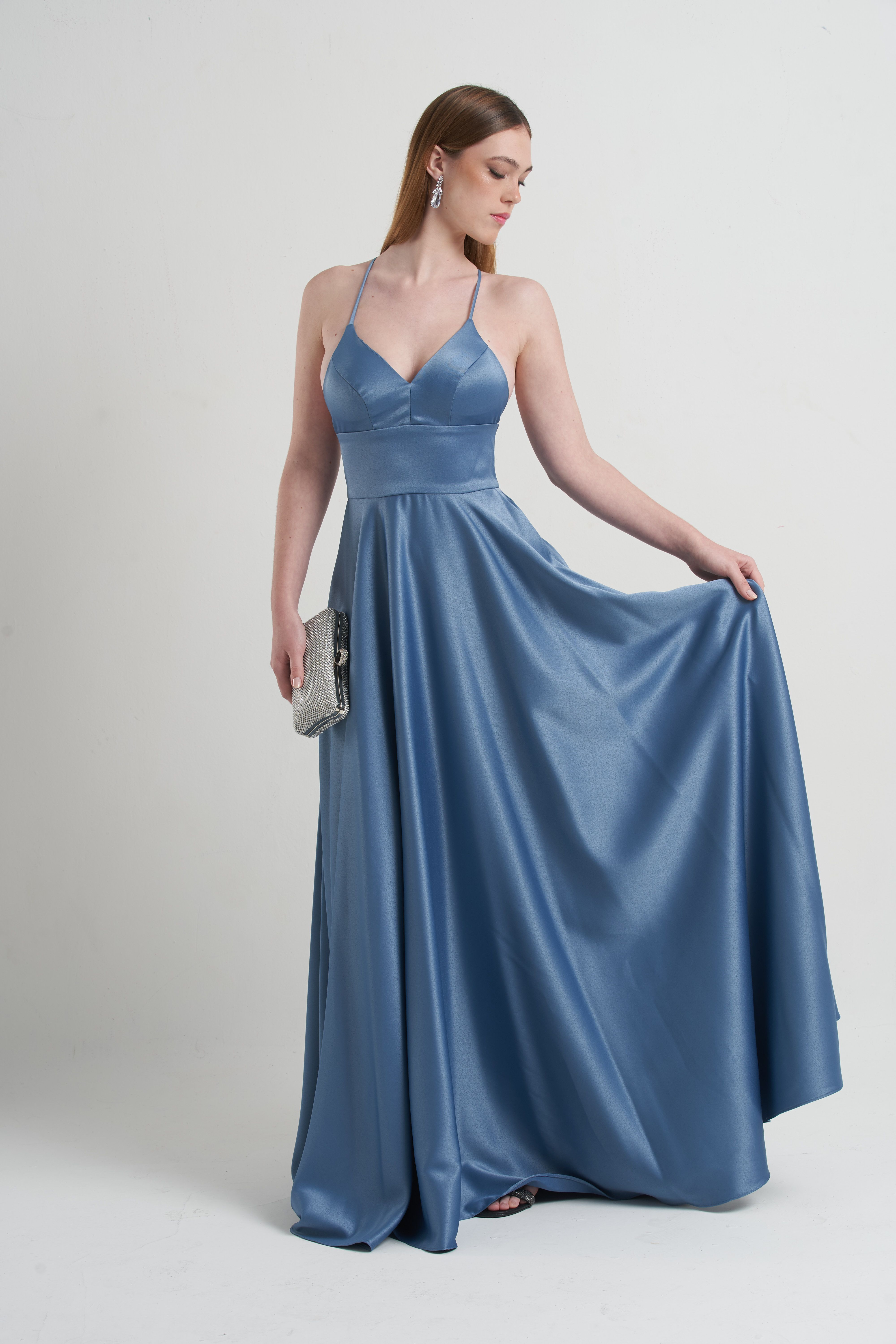 Vestido Cetim com Pala Azul | Marcia augusta pianelli tasca