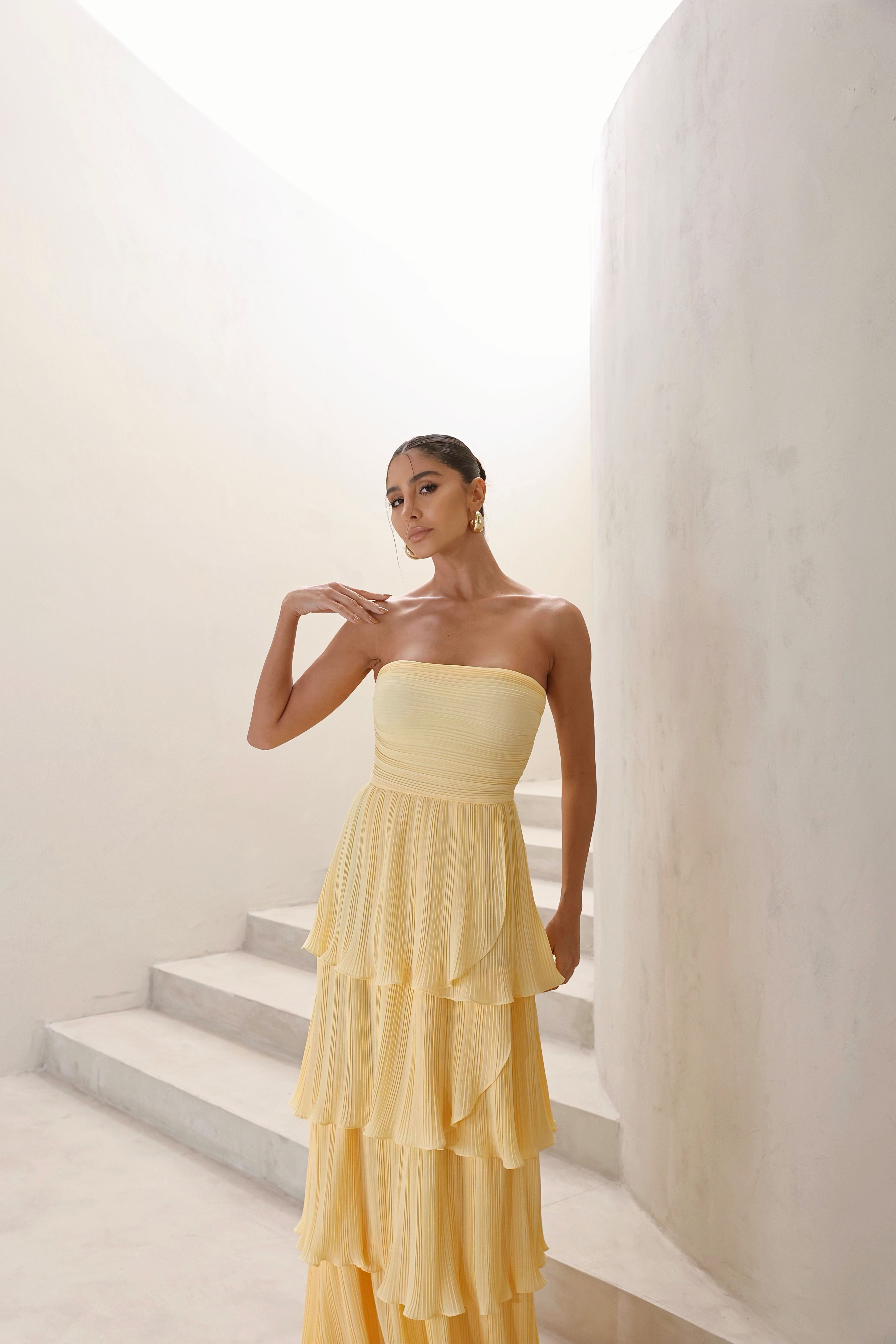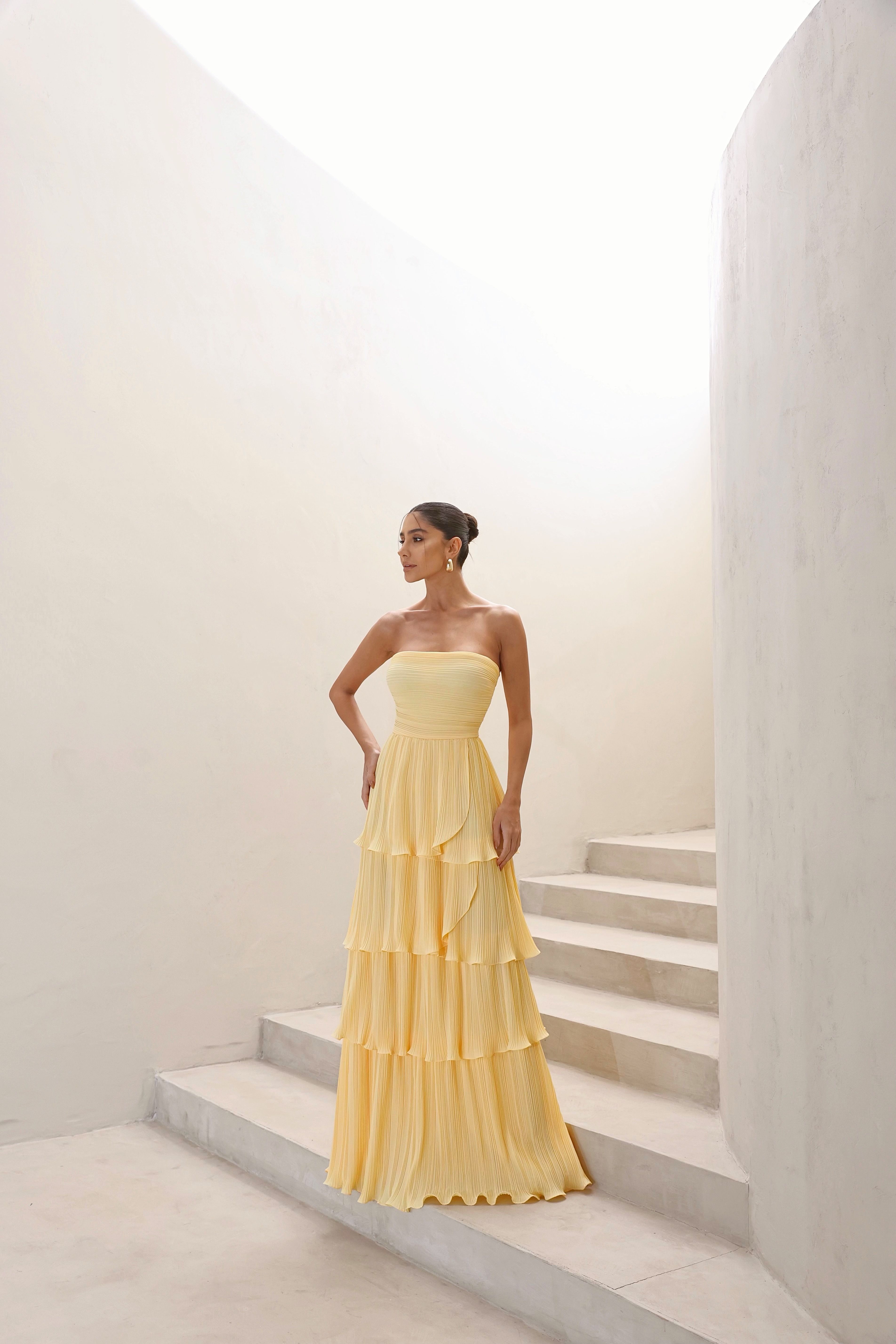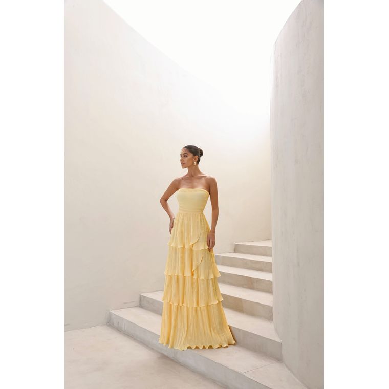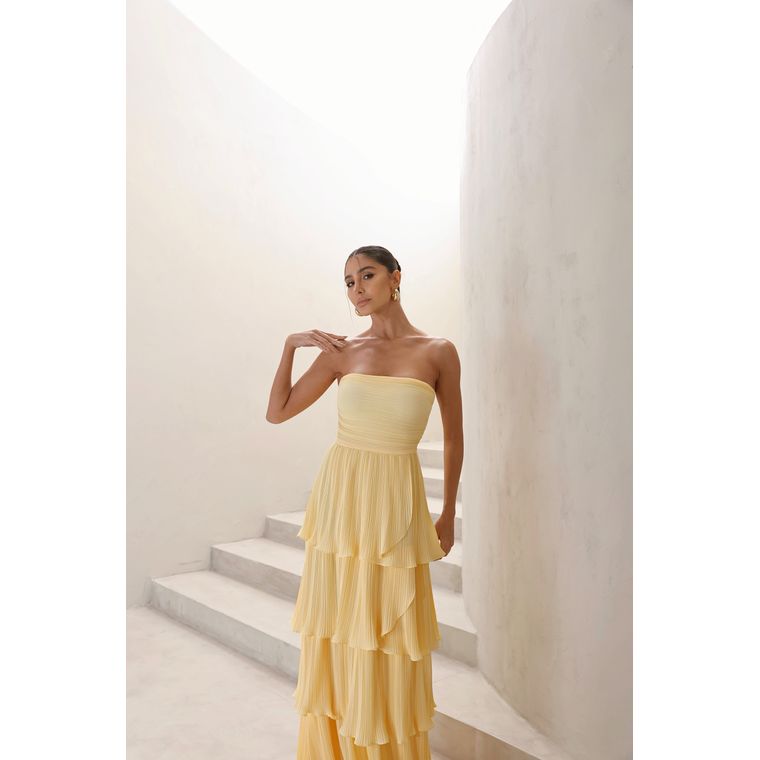 Vestido Dot — tomara que caia em camadas, une leveza e versatilidade. Perfeito para eventos diurnos ou noturnos, do casual ao mais elegante.