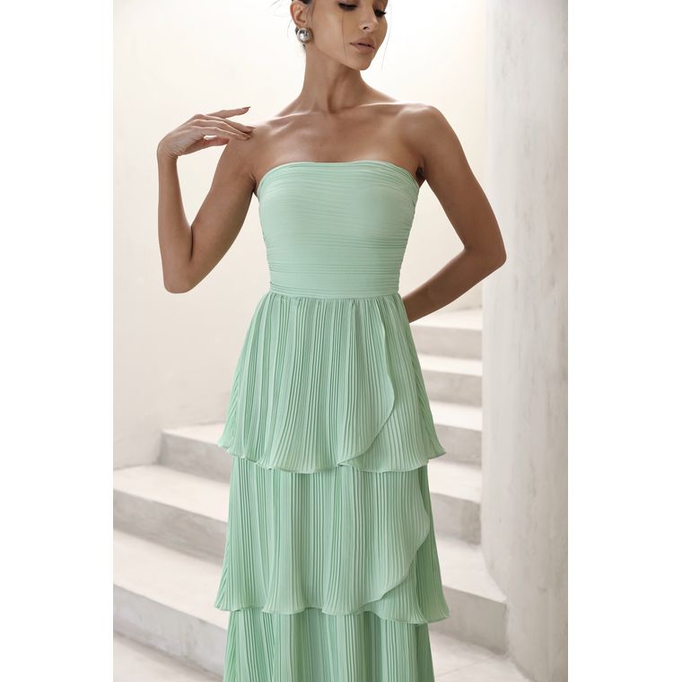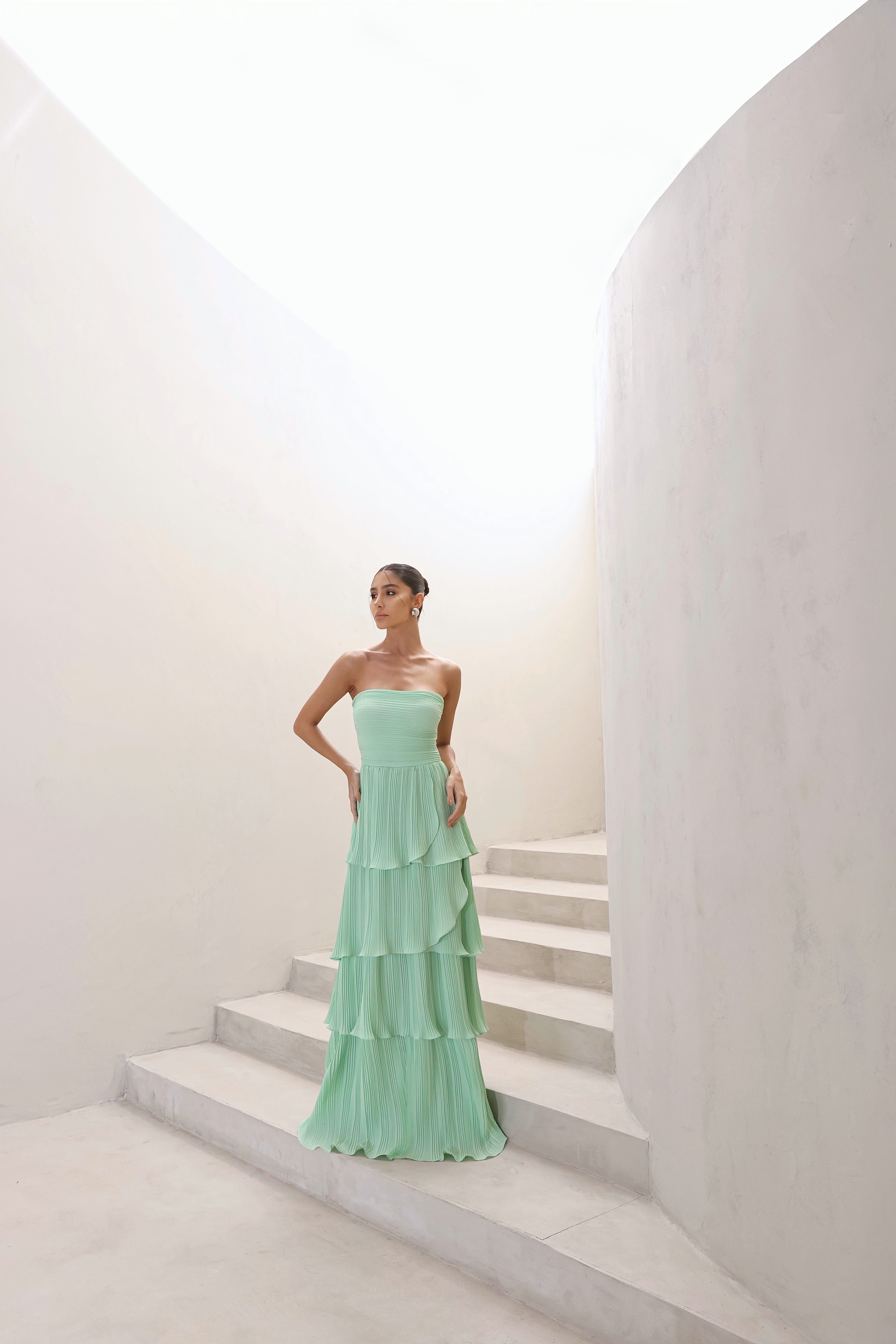 Vestido Dot — tomara que caia em camadas, une leveza e versatilidade. Perfeito para eventos diurnos ou noturnos, do casual ao mais elegante.