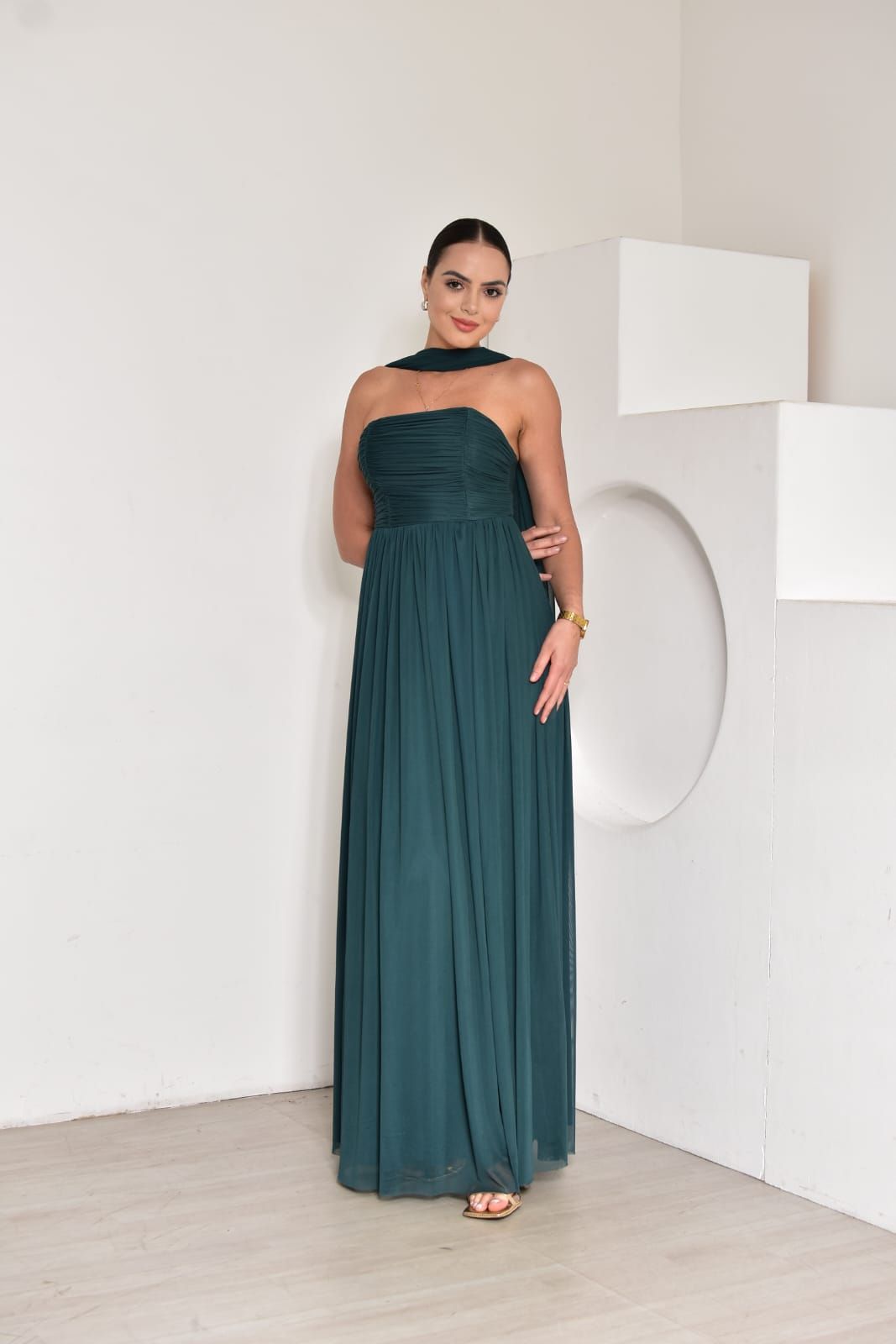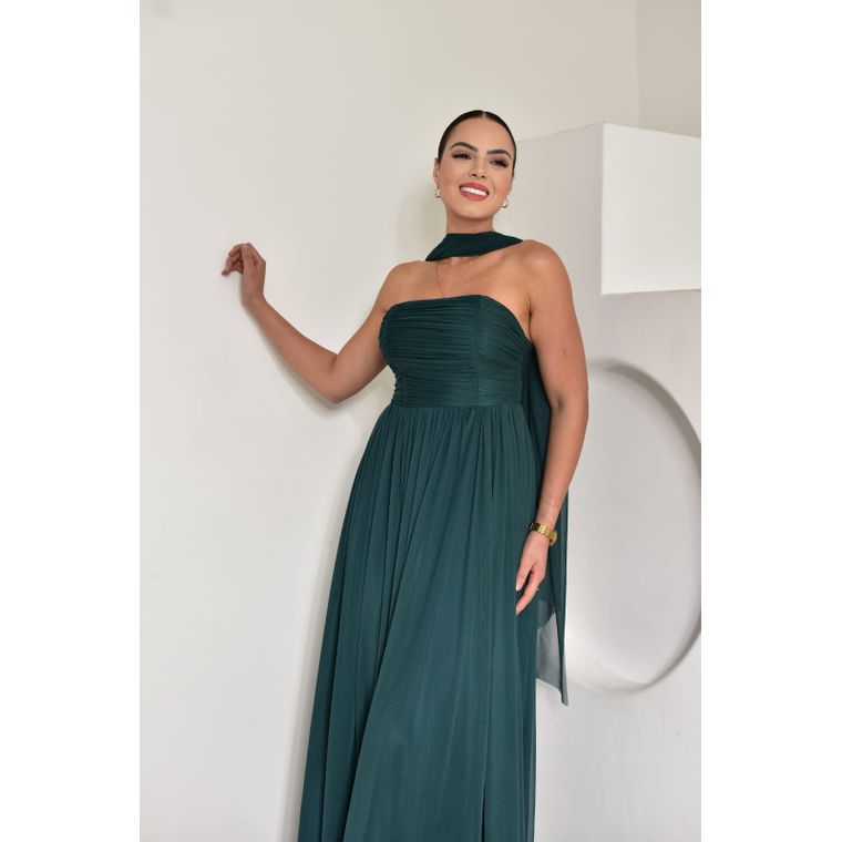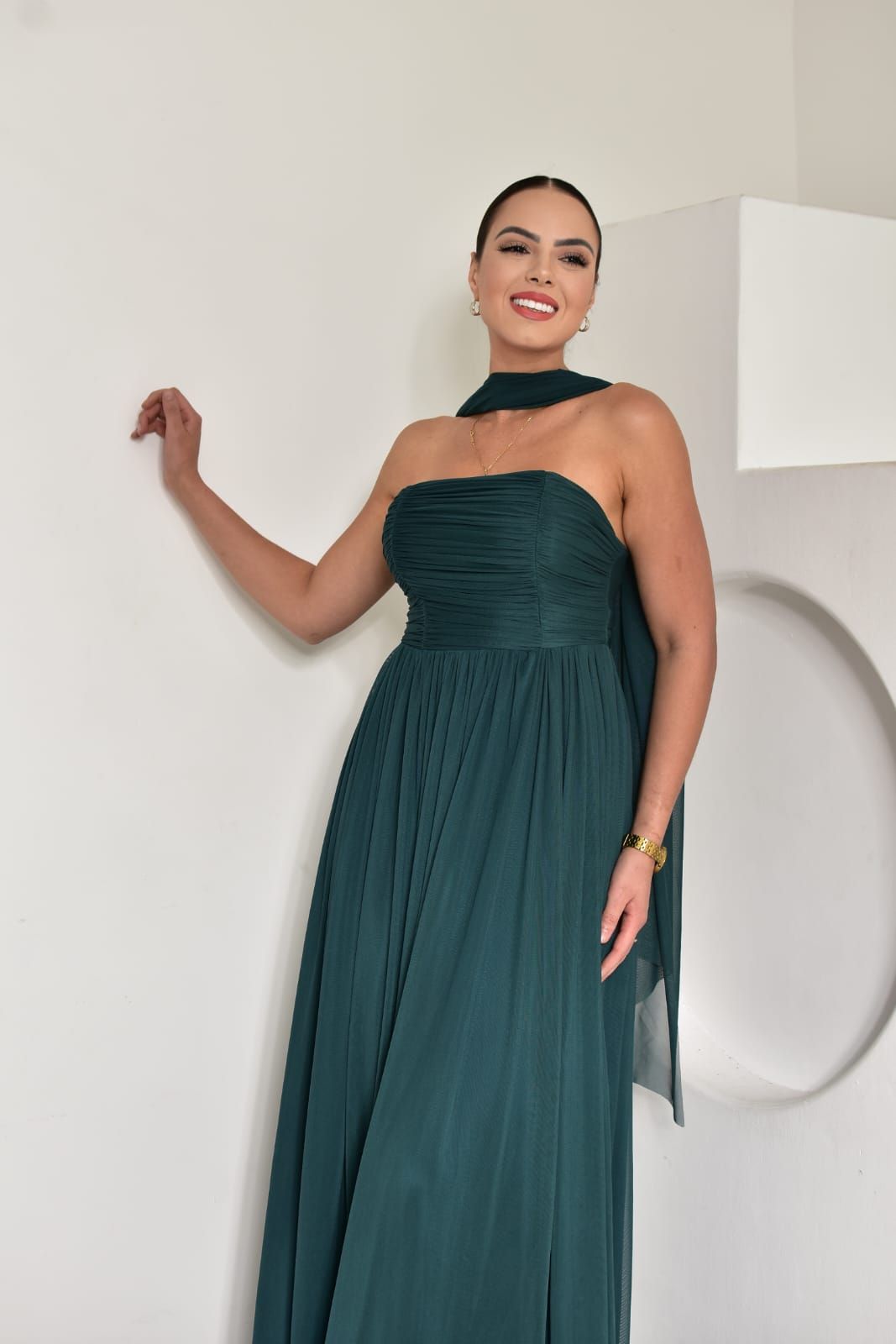 Confeccionado em tule com base de malha-tule, o Vestido Granada oferece leveza com conforto. Possui forro e bojo internos para excelente sustentação. O zíper invisível nas costas garante acabamento limpo e caimento impecável, e o modelo acompanha faixa para ajuste da cintura.