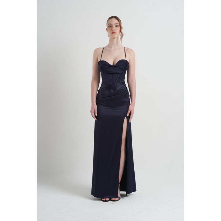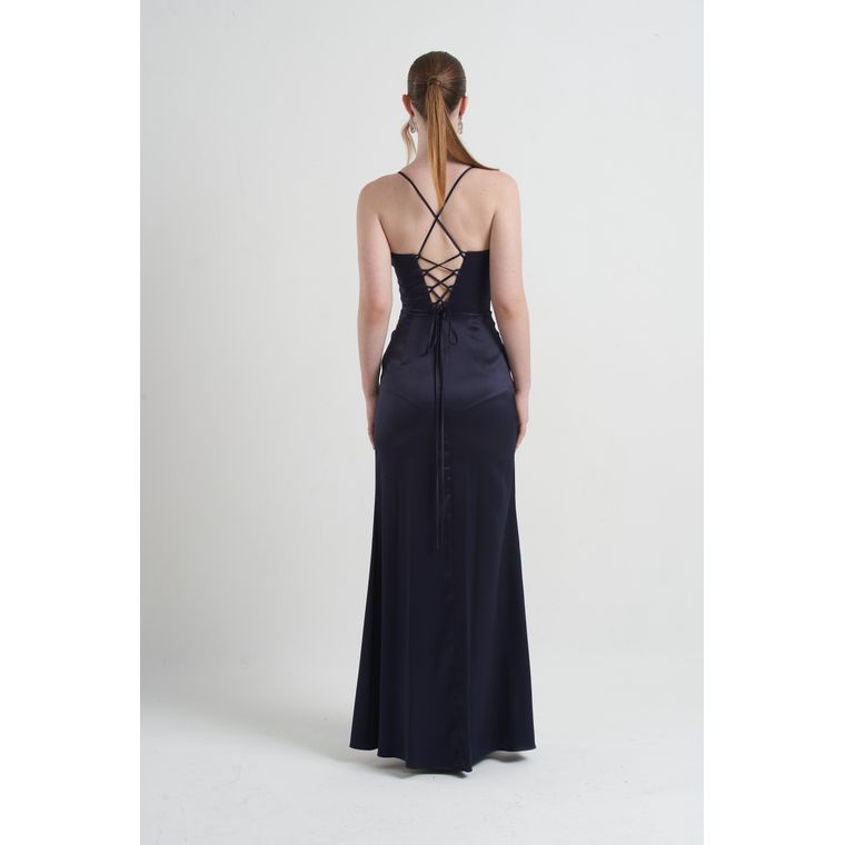 Vestido Grécia é a expressão máxima de elegância e delicadeza. Confeccionado em cetim acetinado, o modelo possui alças finas que destacam os ombros e trazem leveza ao visual. O busto estruturado em estilo corset, com bojo interno, garante sustentação e valoriza a silhueta, enquanto o recorte lateral fino acrescenta modernidade. Nas costas, o design transpassado confere um charme único, equilibrando sensualidade e sofisticação. O fechamento em zíper invisível, que vai da altura acima do quadril até a cintura, proporciona caimento perfeito e acabamento impecável.