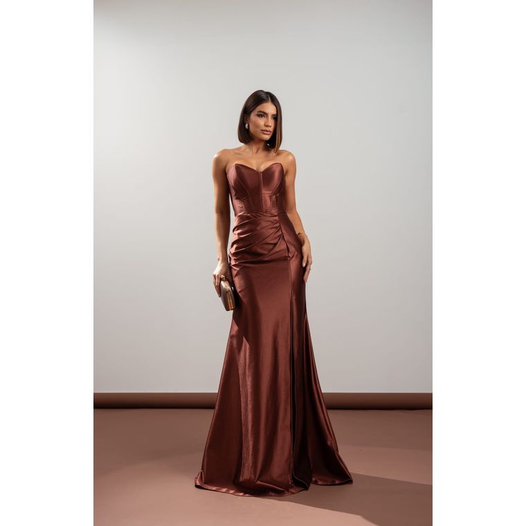 Vestido Joy é sinônimo de glamour e sensualidade na medida certa. Confeccionado em cetim com brilho sofisticado e caimento impecável, o modelo valoriza a silhueta com sua modelagem ajustada e recortes estratégicos. O busto estruturado em corset realça o colo com elegância, enquanto a fenda lateral adiciona um toque ousado e poderoso ao visual. A combinação perfeita entre sofisticação e feminilidade para momentos que pedem impacto.