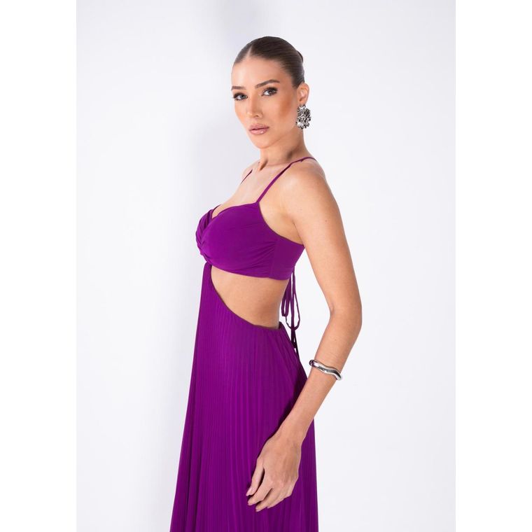• Aberturas laterais abaixo do busto, com pregas bem trabalhadas que dão leveza e movimento ao vestido