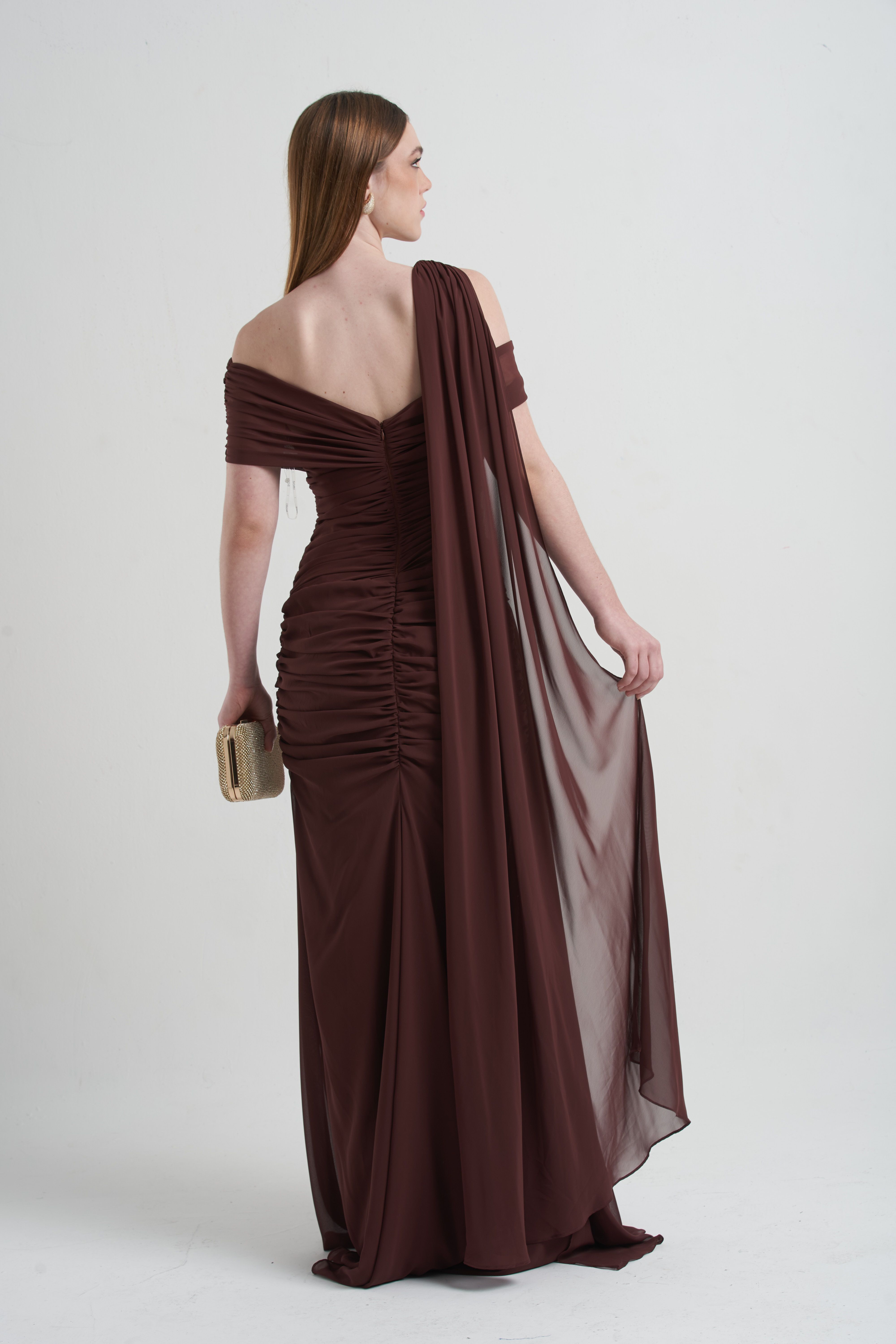 Vestido Lucy é a expressão máxima de elegância e sofisticação. Confeccionado em crepe, o modelo possui caimento justo até o quadril, seguido por uma parte mais soltinha, que garante conforto e leveza ao visual. A manga caída valoriza os ombros de forma delicada, enquanto a faixa que sobe do pescoço até o chão cria um efeito alongador e fluido. Nas costas, o drapeado acrescenta movimento e charme, equilibrando sensualidade e sofisticação. O fechamento em zíper proporciona caimento perfeito e acabamento impecável, e a fenda lateral adiciona um toque moderno e elegante.