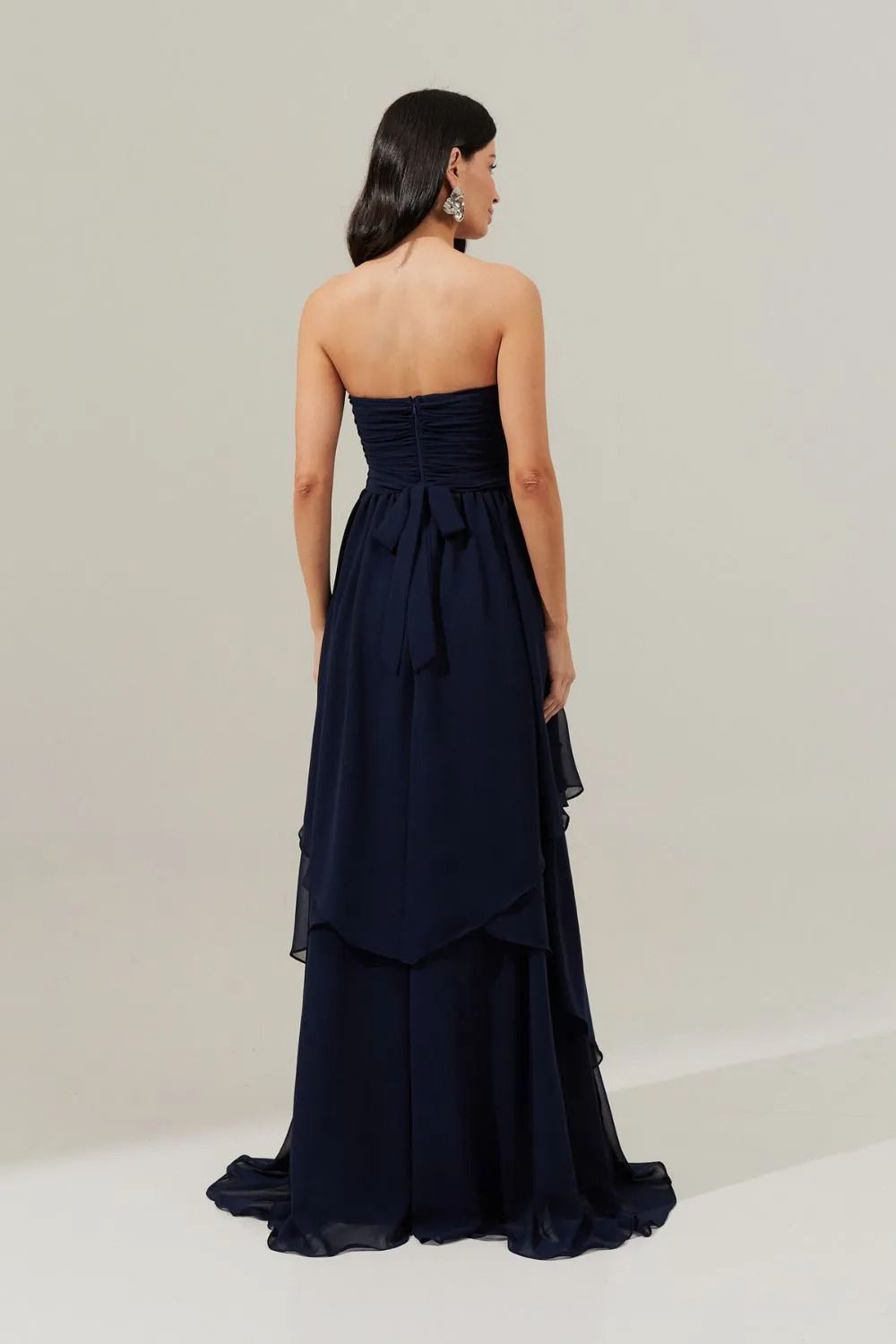 O Vestido Longo Noruega é a escolha perfeita para quem busca elegância versátil. Confeccionado em crepe, tem caimento impecável e confortável. Seu modelo tomara que caia valoriza o colo de forma sofisticada, mas conta também com alça removível, oferecendo duas opções de uso em um único vestido. A saia em camadas garante movimento e um visual moderno e romântico ao mesmo tempo.