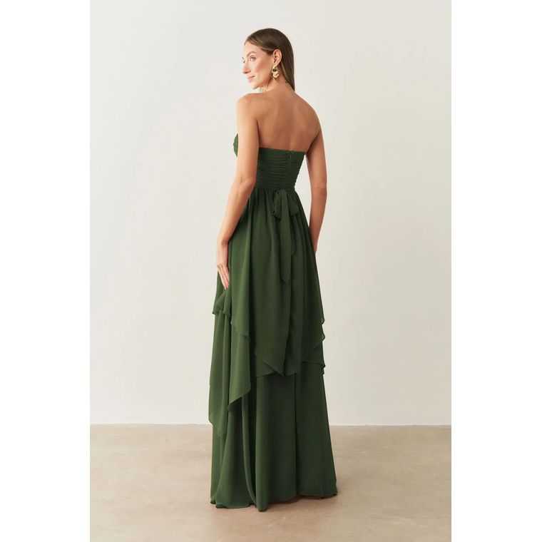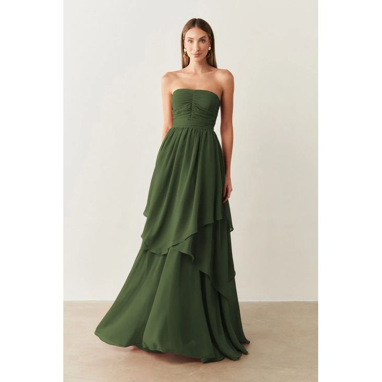 O Vestido Longo Noruega é a escolha perfeita para quem busca elegância versátil. Confeccionado em crepe, tem caimento impecável e confortável. Seu modelo tomara que caia valoriza o colo de forma sofisticada, mas conta também com alça removível, oferecendo duas opções de uso em um único vestido. A saia em camadas garante movimento e um visual moderno e romântico ao mesmo tempo.