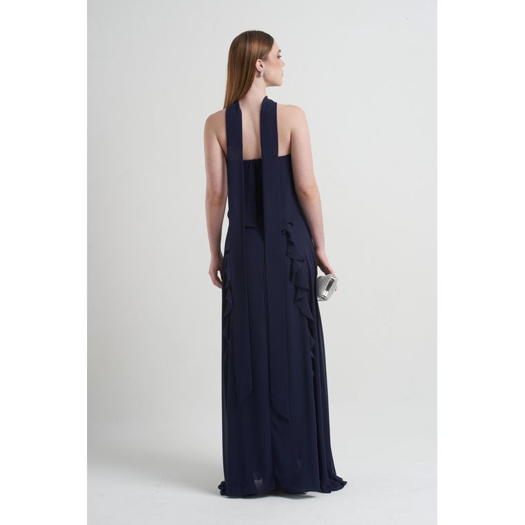 • Saia longa com babados verticais, garantindo fluidez e elegância
