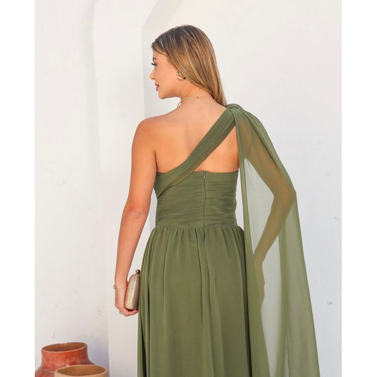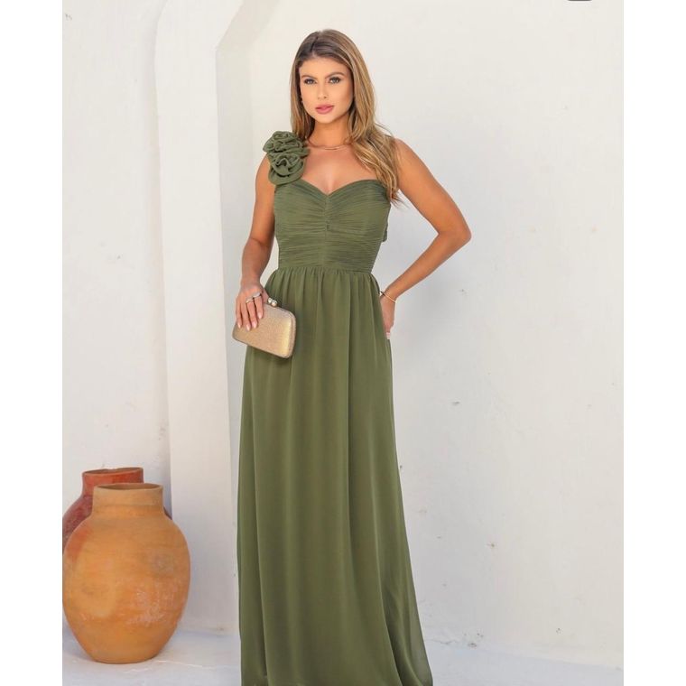 Vestido Viviane é puro charme e elegância em sua forma mais vibrante. Confeccionado em tecido leve e com caimento fluido, o modelo se destaca pela alça única adornada com uma flor estruturada e uma capa delicada que cai sobre o ombro, trazendo movimento e imponência ao look. O busto conta com pala estruturada e drapeado suave, valorizando o colo com conforto e sofisticação. A saia longa se abre sutilmente a partir da cintura, criando um visual fluido e marcante.